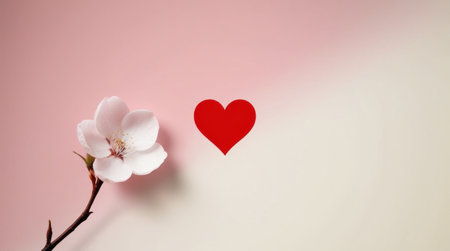 A beautiful white flower featuring a red heart placed on a pink background