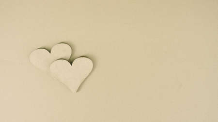 Two heart shape icons made of cardboard on the table