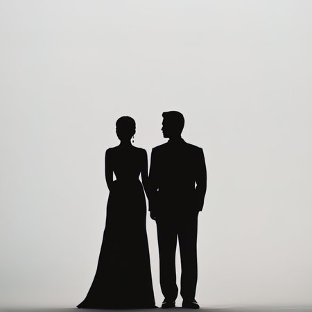 Silhouette of a man and woman on a white background.