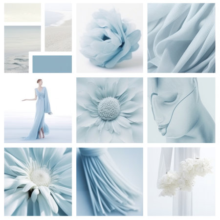 The mood board express the feeling of tenderness, love, beauty and delicious marshmallows. Bright and tender color palette. Collage of several different photos in one color scheme