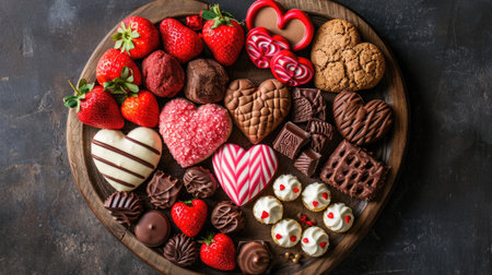 Heart-Shaped Treats on Wooden Tray - Indulgent Assortment for Valentine's Day, Valentine's Day Concept