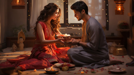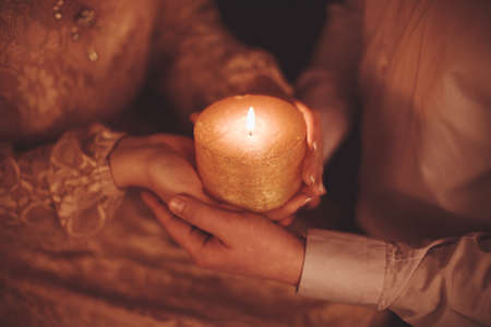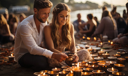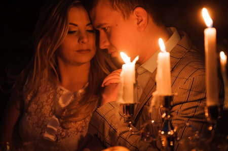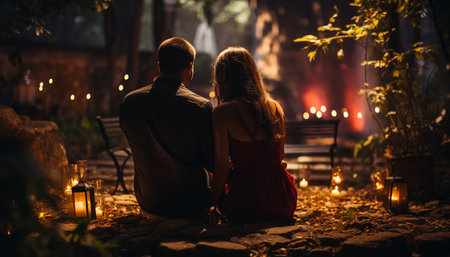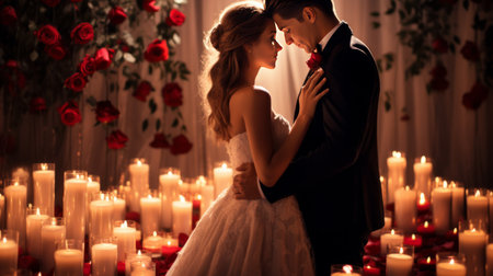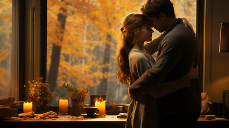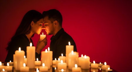 A loving couple shares an intimate moment, surrounded by candlelight and warmth, enhancing their bond. Generative AI