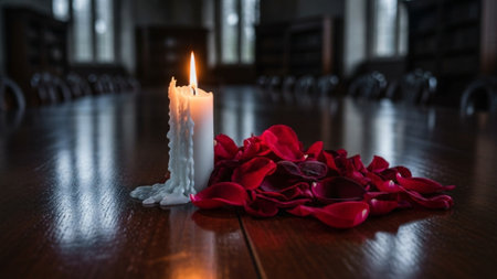 Candlelit tarot reading with roses, set in a dimly lit room, perfect for creating a mysterious and mystical vibe.