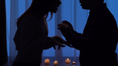 Silhouette of Couple Arguing in Dimly Lit Room with Candles