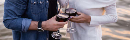 Two individuals enjoy a romantic evening together, seated side by side with wine glasses, creating an intimate atmosphere perfect for Valentine's Day.