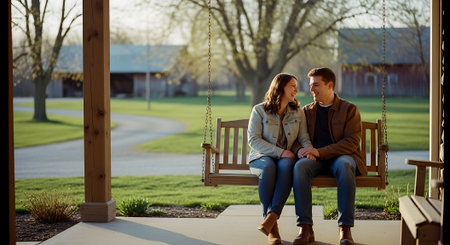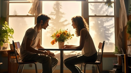 a loving couple sitting together while looking at each other affectionately, created with generative ai