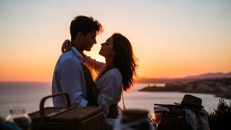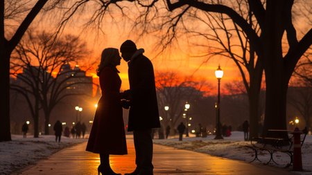 Capture the magic of love with couples silhouetted against a stunning romantic sunset backdrop this Valentine's Day. Enjoy heartwarming moments as the sun sets on this special day.