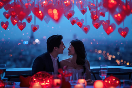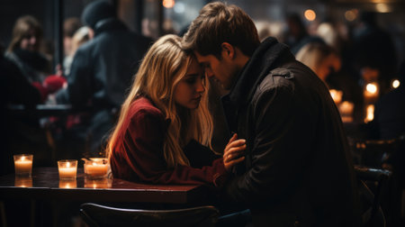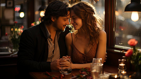 couple in valentines day night at romantic restaurant celebrating their love pragma