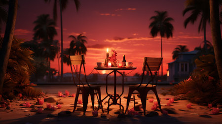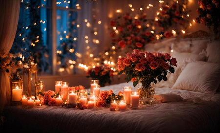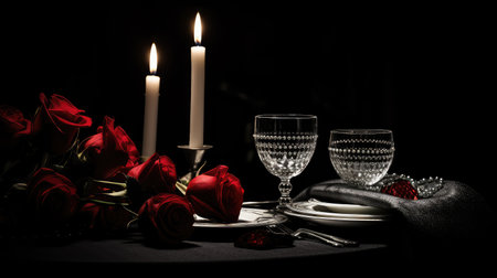 Romantic Dinner for a Couple Surrounded by Red Roses and Candles. Concept of Love, Valentine's Day, and Intimacy.