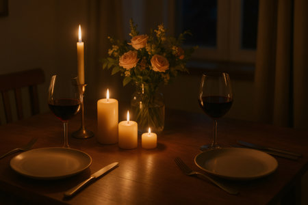 Intimate Moments Shared: Romantic Candlelit Dinner for Two in Cozy Ambiance