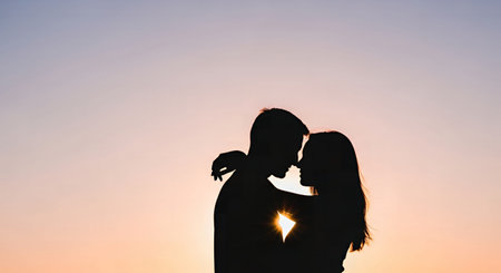couple silhouette at dusk, generative ai