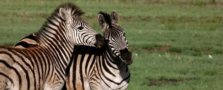 Two zebras (Equus quagga burchellii) in the Okavango Delta, Botswana.