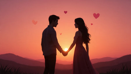 Elegant romantic image featuring a peaceful sunset and loving connection.