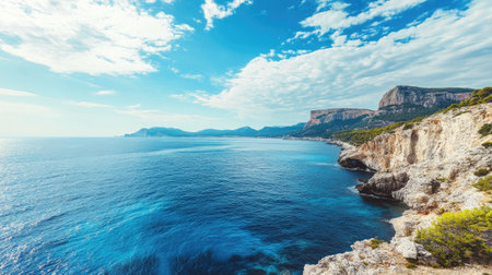 The European sea view captured beautifully, with no fish visible and clean copy space for text.