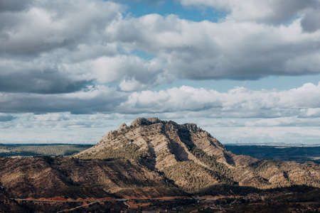 Landscape of the Prades mountains, in Tarragona, Spain. A sunny summer day with green trees