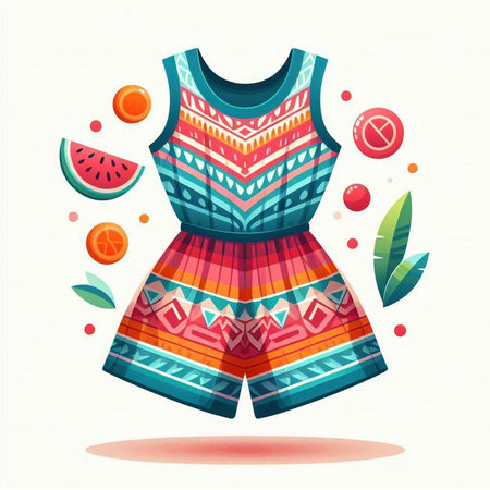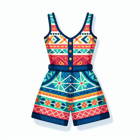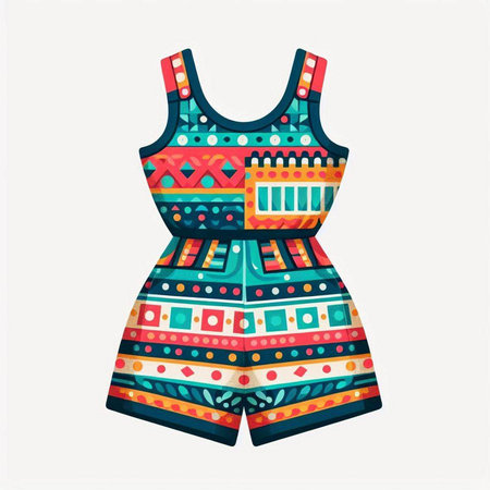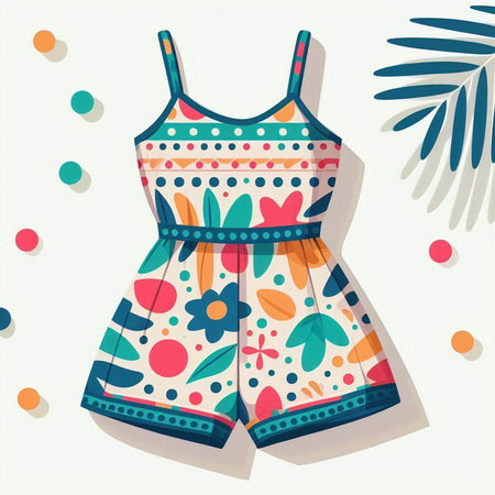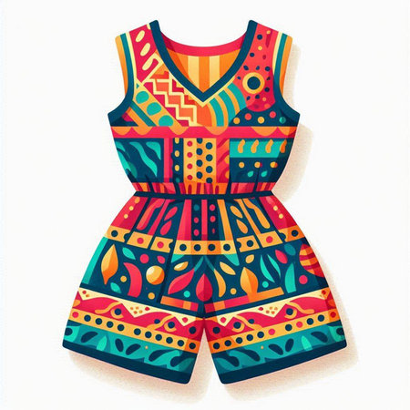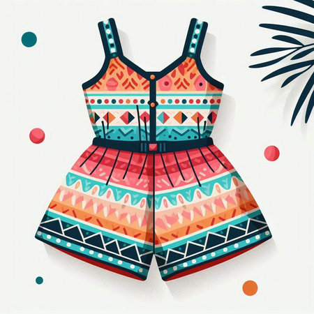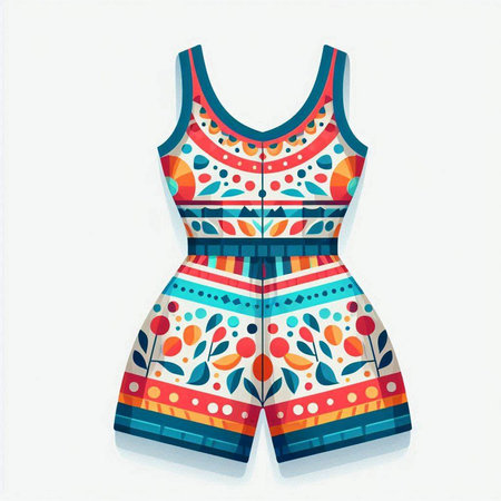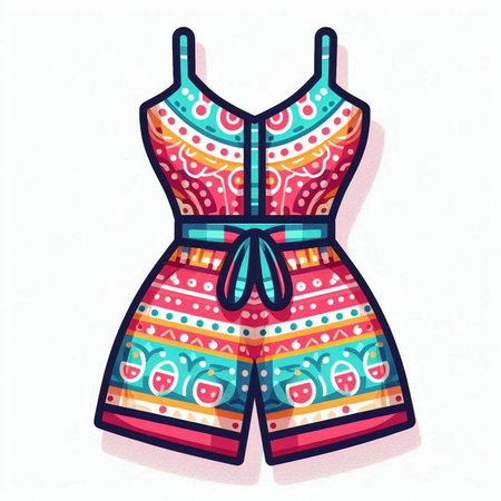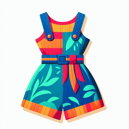 Colorful summer jumpsuit isolated on white background. Vector illustration.