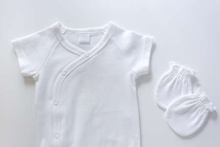 Concept of cute baby clothes on white background.