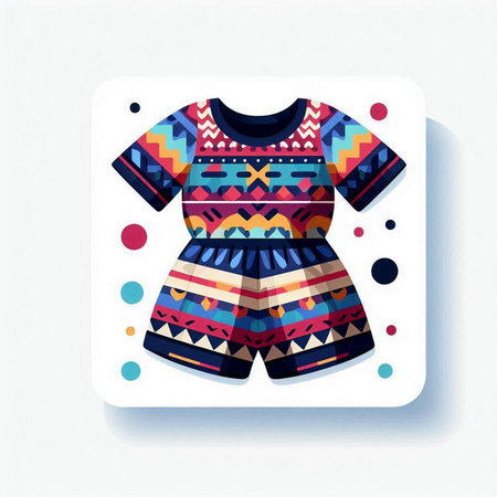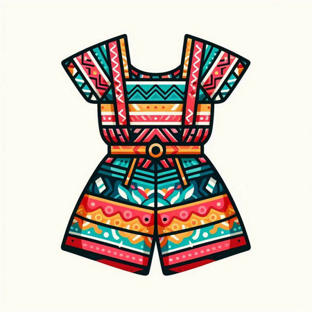 Vector illustration of colorful dress with ethnic pattern on white background. Vector illustration.