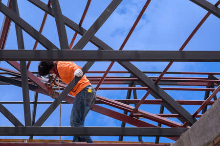 Engineers worker install new roof at construction site,Roofing tools,CPAC roof technician,Construction concepts.