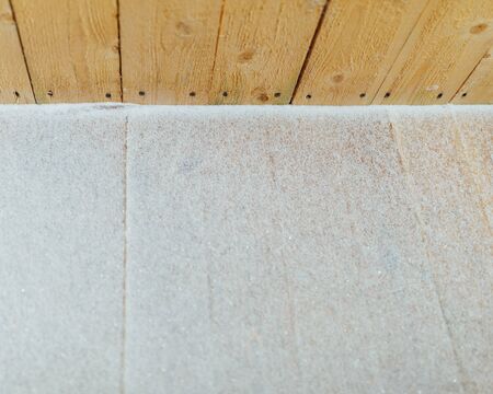 Attic Roof Insulation. Close up on insulation layers of mineral wool insulation, house roof insulation. Insulating with Mineral Rock Wool House Attic Roof.