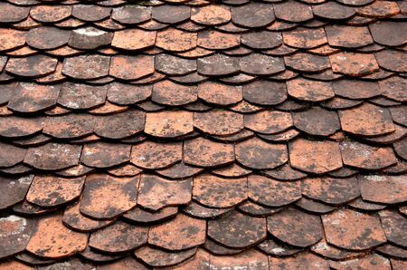 Old Red Ceramic Roof Tiles Background. Old pitched roof