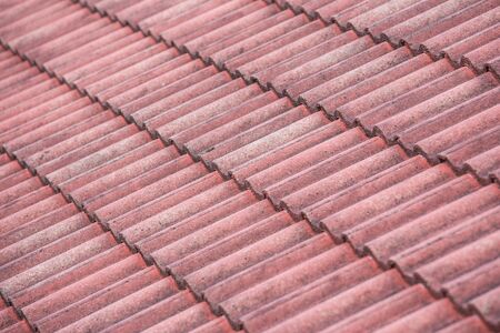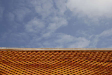 The texture of the red ceramic Tiles on the Roof of a House with Blue Sky background