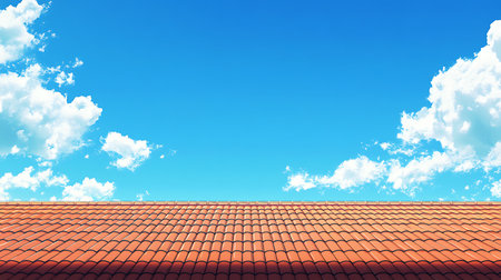 A stunning view of a classic terracotta roof against a vibrant blue sky. The image captures intricate tile patterns, showcasing traditional architecture and rustic charm.