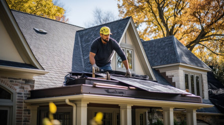 roofer and craftsman is working and installing on rooftop