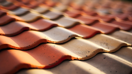 Red tiles roof texture architecture background, detail of house close up detail.