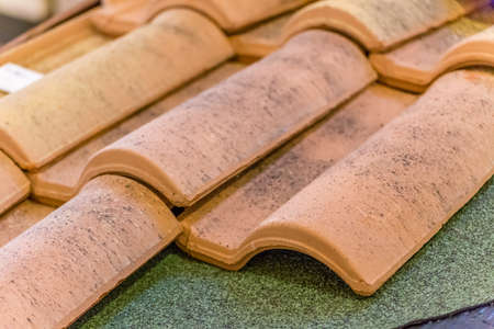 New roof with ceramic tiles in sunny day