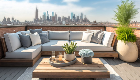 Luxury penthouse terrace with outdoor furniture, created using generative ai technology