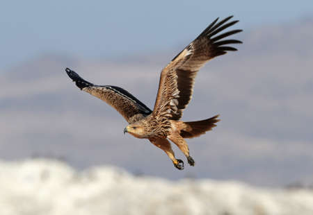 Immature Eastern Imperial Eagle (Aquila heliaca) near Raysut, Salalah, Oman. Taking off.