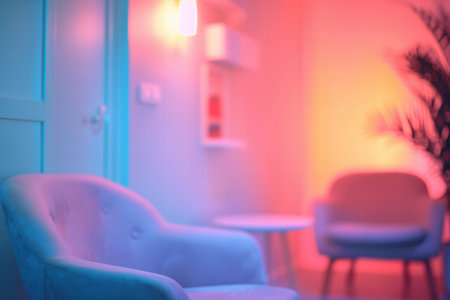 Modern therapy room with blurred background and soft furniture