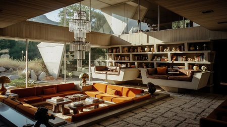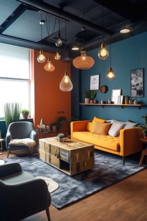 A stylish modern living room interior design with vivid and warm tone colors in the apartment. Generative AI AIG27.
