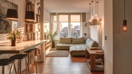 Modern luxury apartment with comfortable furniture, elegant design and lighting generated by artificial intelligence