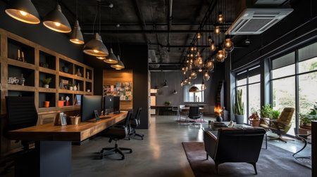 Inspiring office interior design Industrial style Corporate Office with Open Space Design featuring Exposed ceilings architecture. Generative AI AIG 31.