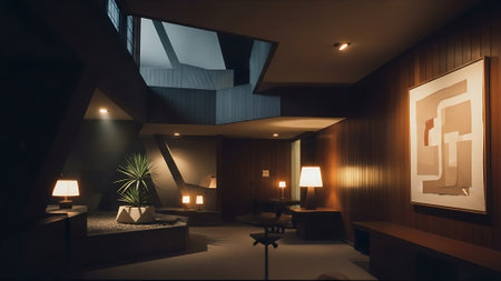 A luxurious interior featuring bold art pieces, elegant furniture, and dramatic lighting, creating a refined and cozy atmosphere.