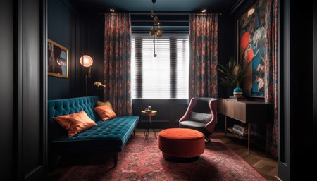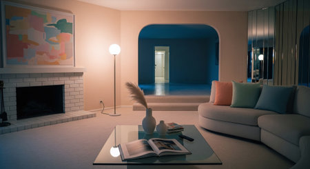 Modern apartment with comfortable furniture, bright colors, and elegant design generated by artificial intelligence