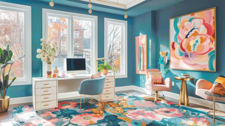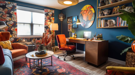 Inspiring office interior design Eclectic style Study Room featuring Mix of patterns architecture. Generative AI AIG 31.
