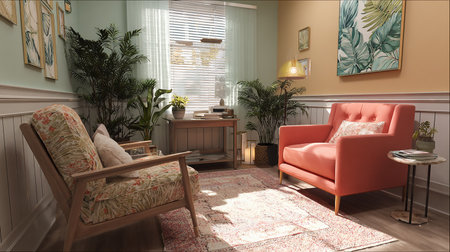 Inspiring office interior design Retro style Lounge featuring Vintage accents architecture. Generative AI AIG 31.
