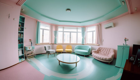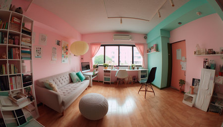Modern apartment design with bright colors and comfortable furniture inside generated by artificial intelligence