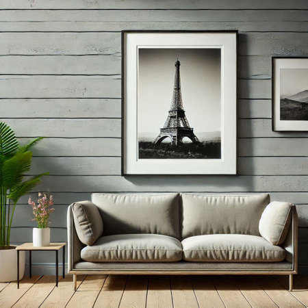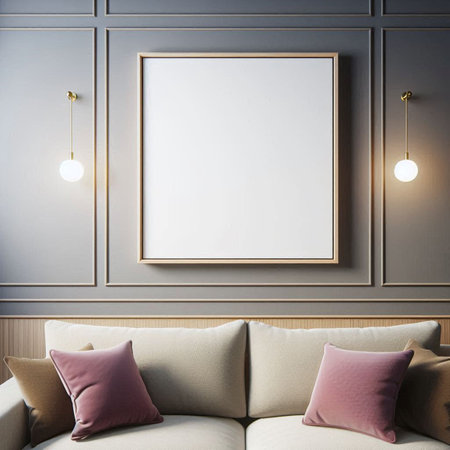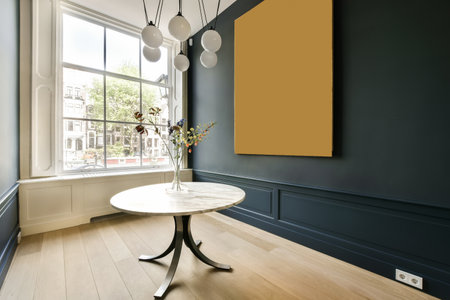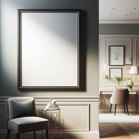 Stylish room mockup for picture art presentation, photorealistic 3D Illustration of the interior, suitable for using in video conference and as a virtual background.