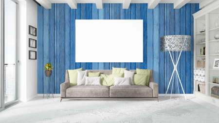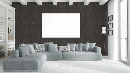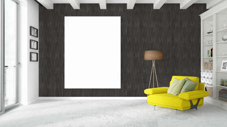 mock up poster frame in interior background. 3D Illustration.