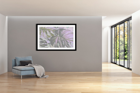 Bright interior with frame in a modern style . 3D render
