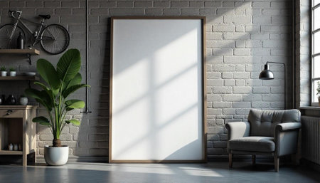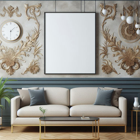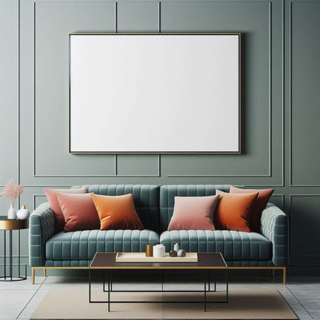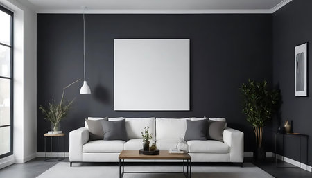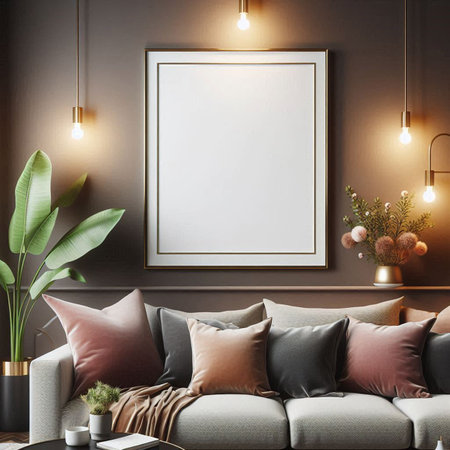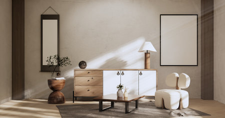 Modern interior design featuring a blank poster frame mockup