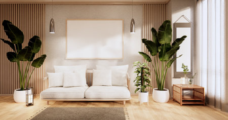 Living room interior - room modern tropical style with composition - minimal design. 3D rendering