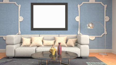 Modern interior with empty frame . 3D rendering