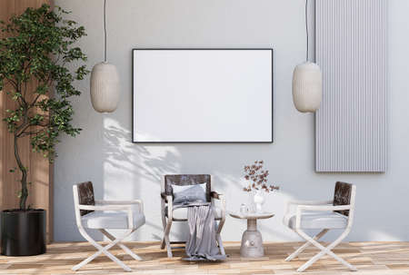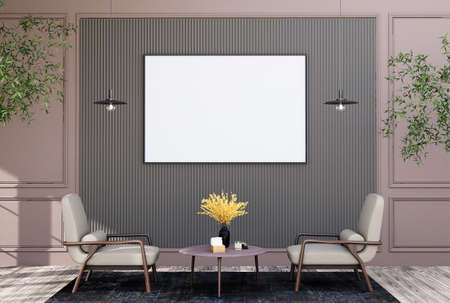 Mock up poster frame in modern interior background, 3d render illustration