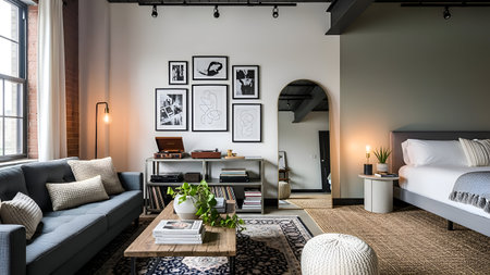 Interior design of a modern living room in a loft style.