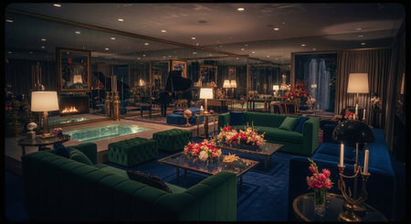 Luxury hotel lobby interior with sofas and sofas
